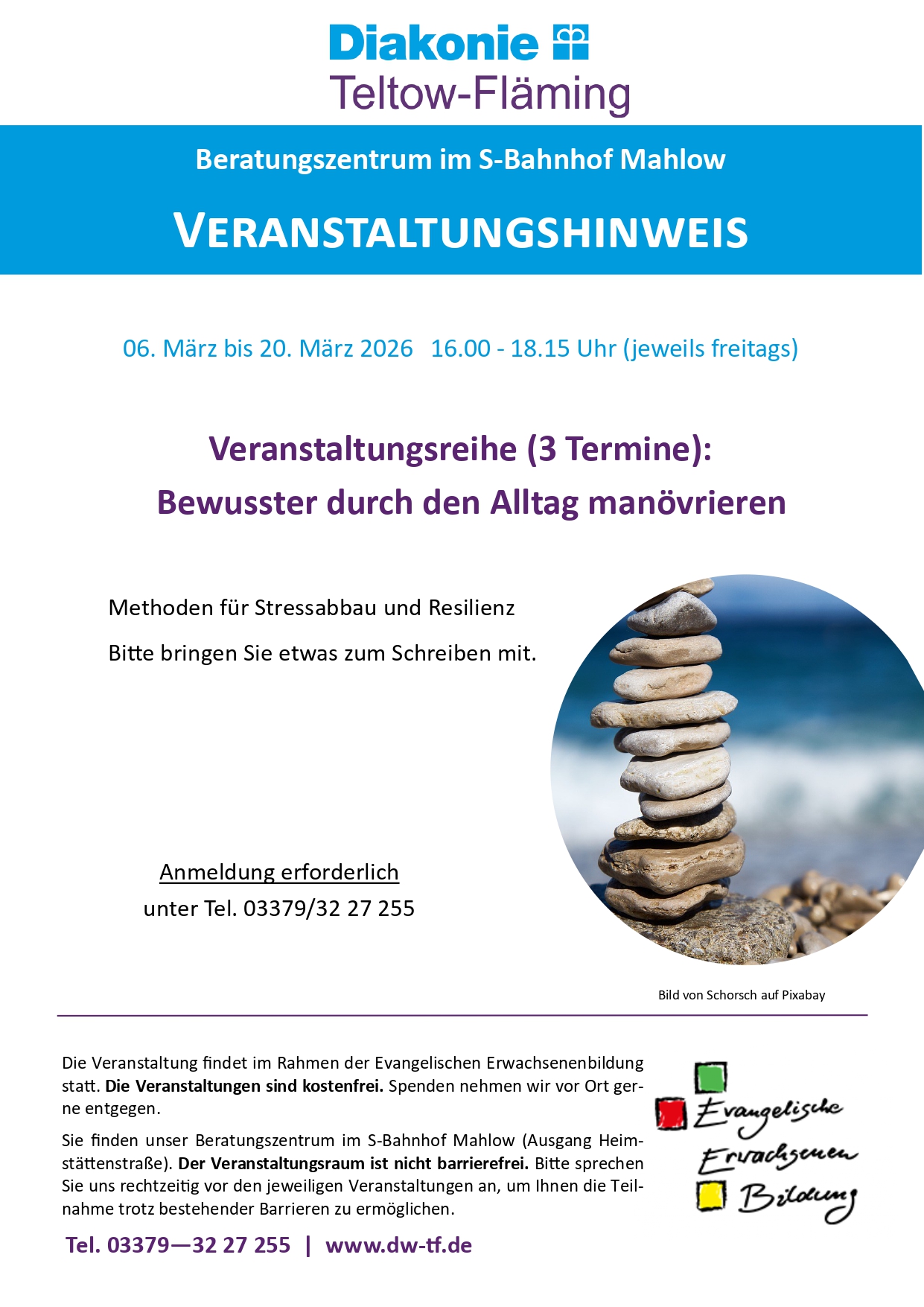 Dreiteilige Veranstaltung zum Thema „Bewusster durch den Alltag manövrieren“